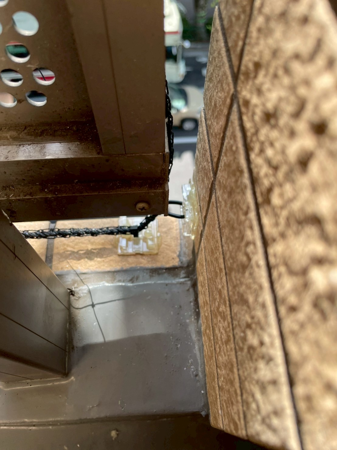 この時、鳩が足を留めるスペースがなくなるよう、なるべく壁のフチ側に付けるよう意識しています。